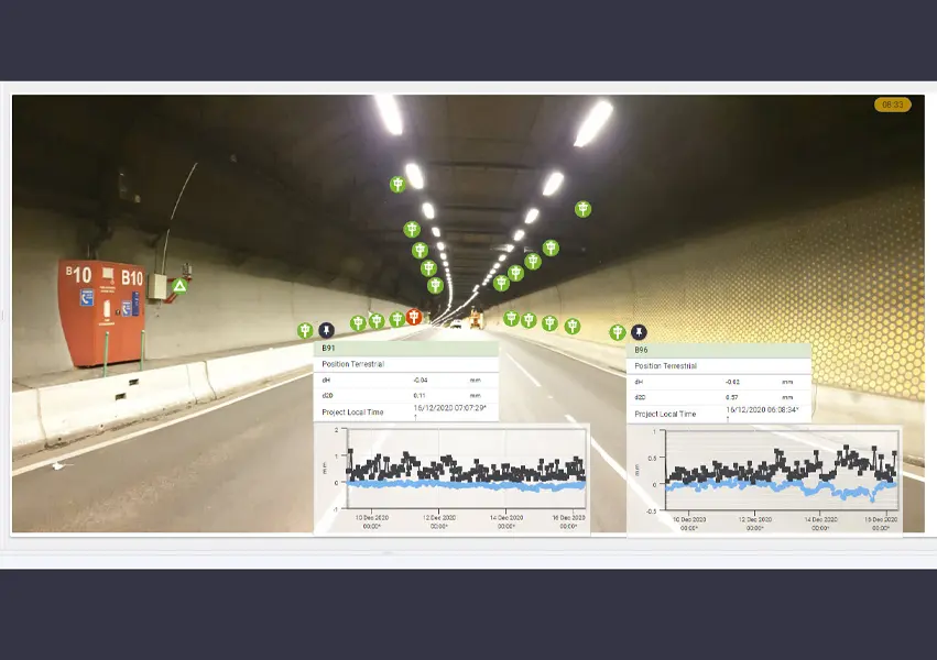 To mitigate these risks, Veris were engaged to design, deploy and operate an automated monitoring solution which involved the installation of several total stations and fixed prism array to continuously monitor tunnel stability for a duration of six months.