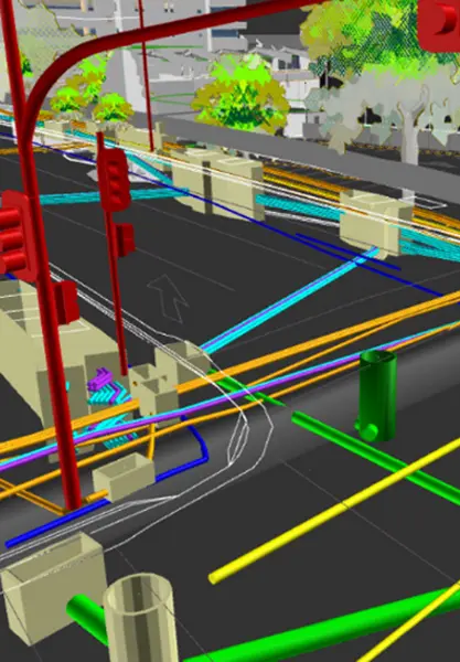 Veris were able to assist CRRDA by enabling delivery of digital subsurface service locational data in three dimensional digital models and integration of this with surface survey and laser scanned data to create a building information model (BIM) deliverable. This BIM then directly supporting design and visualisation initiatives as well as direct integration into the digital twin supporting the project. Terrestrial laser scanning of drainage manhole chambers provided proof of location to resolve as built data conflicts.