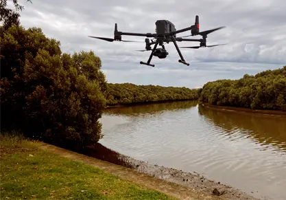 We deployed Unmanned Aerial Vehicle (UAV) photogrammetry to capture in high definition the Duck River extents. An M300 UAV with a P1 42-megapixel camera, using nadir and oblique techniques completed the data capture to provide an accurate and comprehensive photorealistic mesh. A key consideration was to capture the river at low tide.