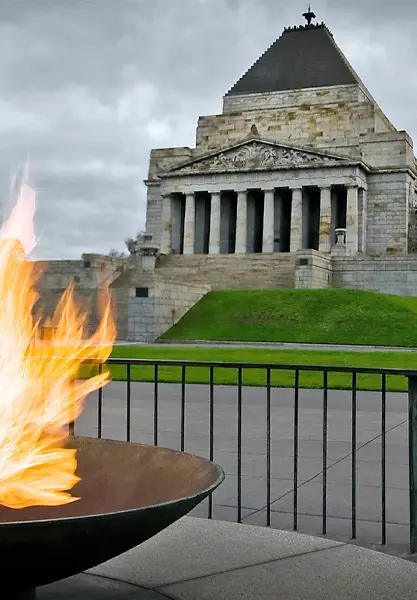 The Shrine of Remembrance was constructed to commemorate the loss of lives in the First World War (1914 –18). Of the 89,000 Victorian ANZACs who served abroad, 19,000 lost their lives and were buried far from home at a time when most Australians did not travel overseas.